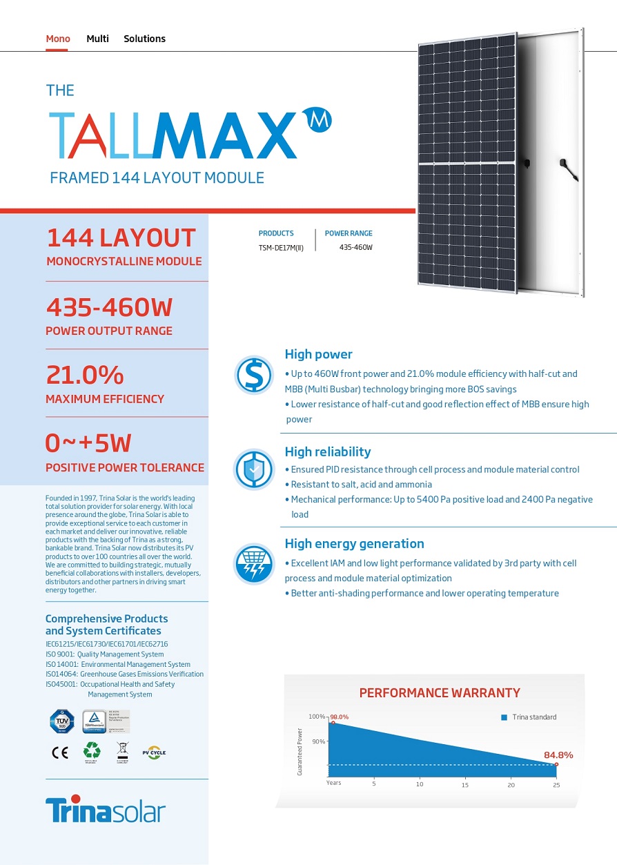 Module Type Tall Max 450W Tall Max 455W Tall Max 460W